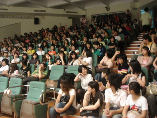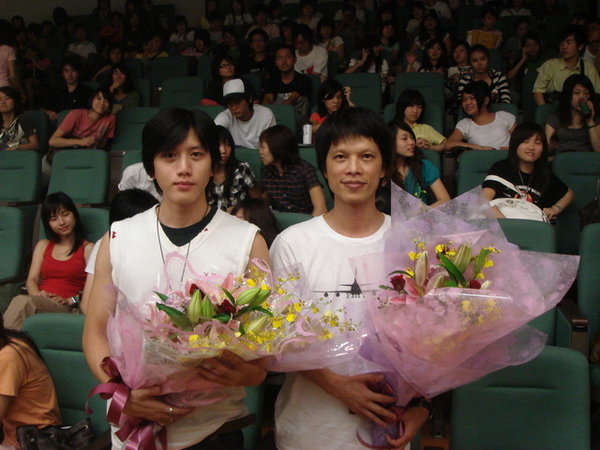 電影代表曲─梁靜茹「崇拜」預告片,引發學生極高的熱情。座談會開始,自己孤獨坐在講台前的導演打趣的說,他和幾個演員目前是處於「最遙遠的距離」,希望原本想來看小鎂和小莫的同學能想像他們就坐在旁邊。