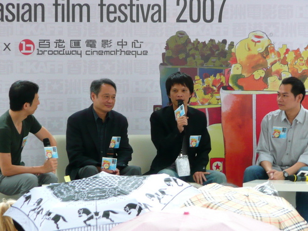 香港亞洲電影節「華語電影薪火相傳」研討會(左起:林奕華主持人、導演李安、林靖傑、譚國明)